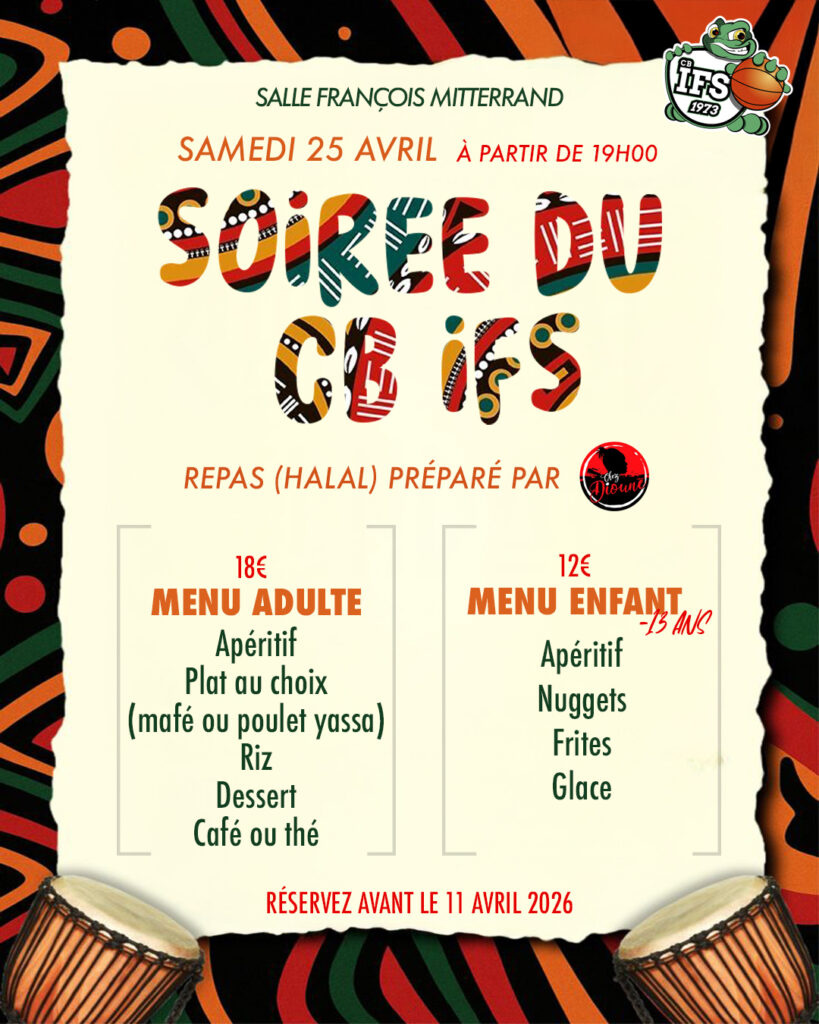 Le CB Ifs organise une soirée conviviale et animée le samedi 25 avril 2026 à partir de 19h 📅, à la Salle François Mitterrand 🏛️. Un rendez-vous ouvert à tous, placé sous le signe du partage et de la bonne humeur.